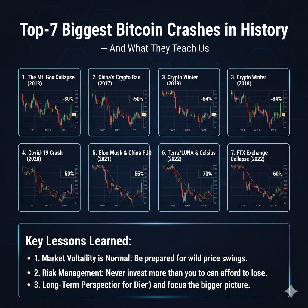 Top-7 Biggest Bitcoin Crashes in History — And What They Teach Us❗