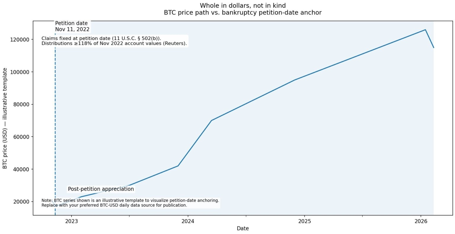 For FTX customers, that means their entitlements were calculated using crypto prices from the depths of the 2022 market collapse, not the subsequent rally that saw Bitcoin climb from under $17,000 to a peak of $126,000.