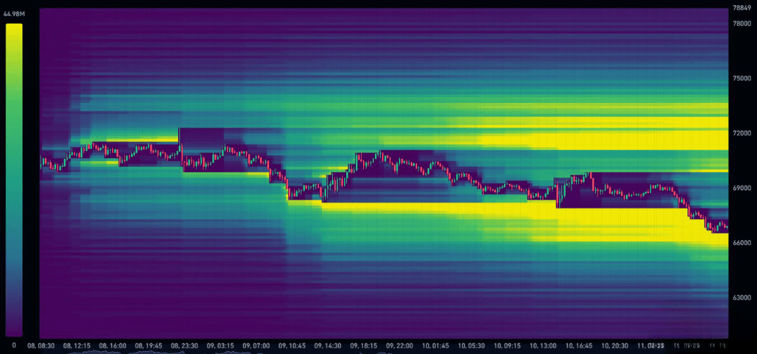 There’s fresh liquidity building between $65,000–$66,000. That zone acts like a magnet in the short term and could still be tagged if sellers push once more. But zoom out, and the bigger liquidity pool sits higher — $71,000–$74,000 remains stacked with heavier exposure.