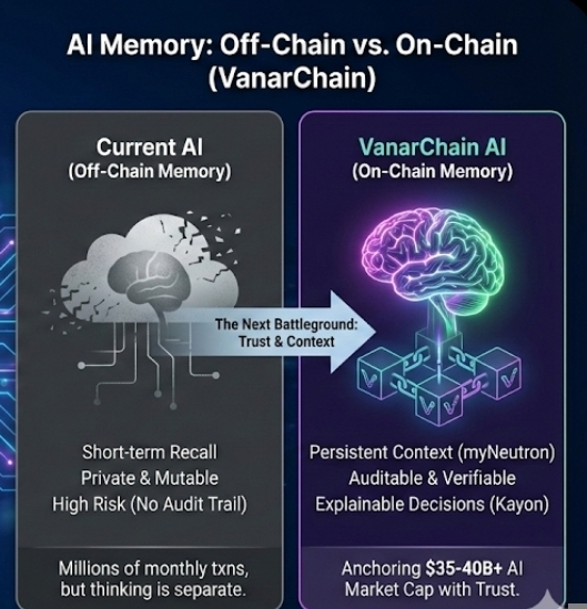 The first time I heard someone say “AI needs memory on-chain,” I almost dismissed it as another narrative wave. We have heard about faster chains, cheaper fees, smarter contracts. Memory sounded abstract. But the more I looked at VanarChain, the more I realized this is not about storage in the usual sense. It is about giving AI a place to remember in a way that can be verified.