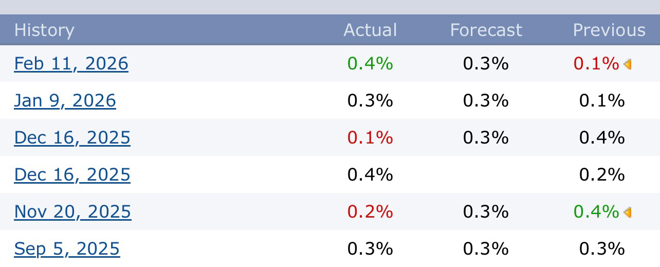 But we should not overreact to one data release. What matters more is the trend. Looking at the previous months in the table we see inflation has been moving around 0.3 percent. Now it jumped to 0.4 percent. That is not extreme but it signals price pressure is not fully gone.