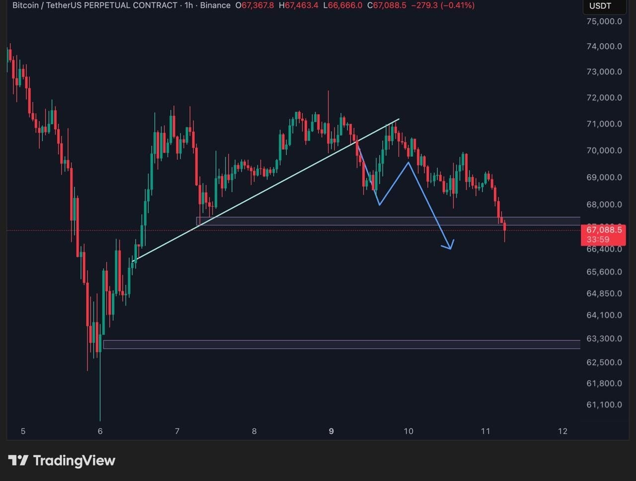If the current $67k support snaps, every professional trader has the same target: $63,000.