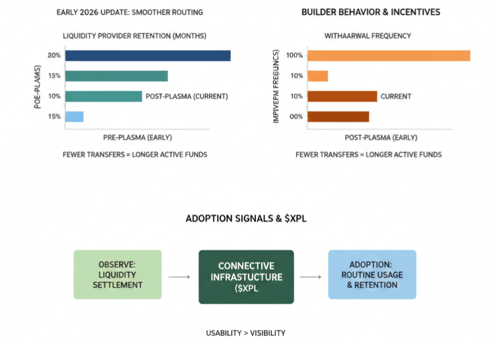 An early-2026 update about smoother cross-chain routing tools caught my attention because it reduced repeated bridging steps. Small changes like that often reshape behavior fewer transfers usually mean liquidity providers withdraw less often and keep funds active longer. Conversation around plasma has gradually leaned toward usability rather than visibility. If routing keeps simplifying, could retention across chains become the clearer adoption signal?