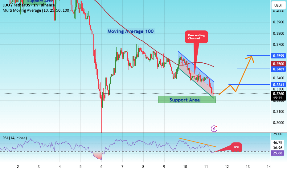 There is a key support zone in green at 0.3217, and the price has bounced from this level several times and is expected to bounce again.