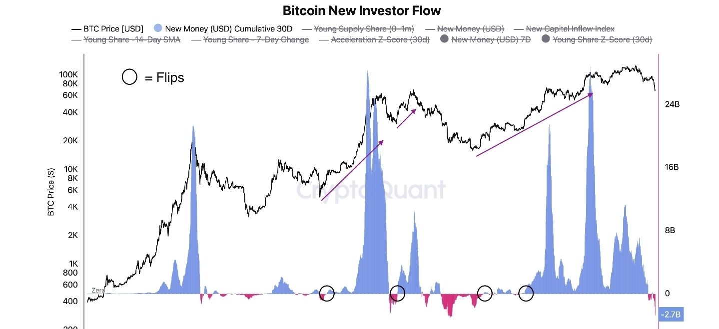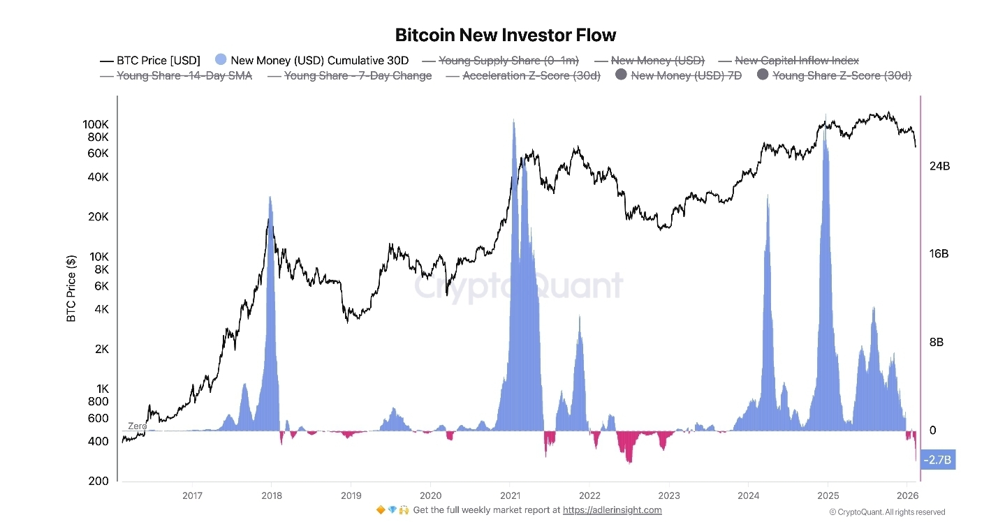 As of February, wallets linked to new and short-term holders have recorded about $2.7 billion in net outflows the largest since 2022.
