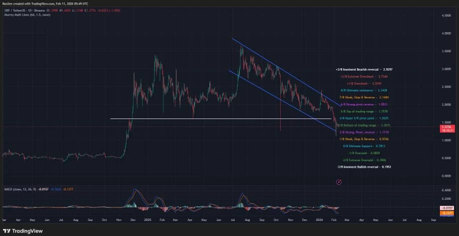 XRP is currently hovering in that frustrating $1.35–$1.40 zone as of mid-February 2026 , a level that feels "cheap" after the higher prices we saw in late 2025, but one that keeps testing holders' patience. The token is down roughly 25–30% year-to-date, dragged by broader market softness, slowing ETF momentum, and no big breakout spark from recent events like Community Day.