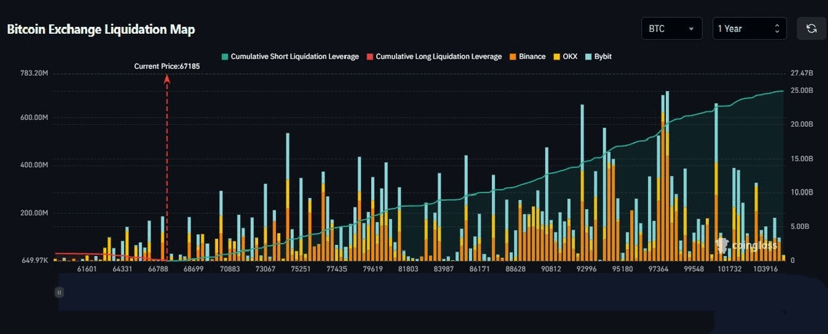 The Target: A massive wall of short liquidations is stacked all the way up to $104,000.