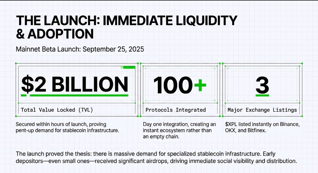 The project’s mainnet beta went live on September 25, 2025. That was a big moment not just for Plasma, but for stablecoin infrastructure as a category. Within hours, the network had over $2 billion in stablecoin liquidity locked in, and more than 100 DeFi protocols integrated from day one. That’s not just hype that’s immediate real-world use and utility out of the gate.