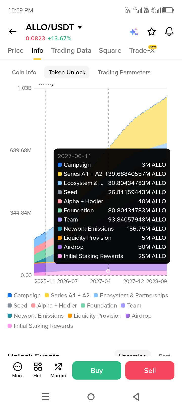 According to recent price trackers, the February 10 and March 11 unlocks for ALLO are about 3.69 million tokens each — roughly 0.37% of total supply (not huge relative to circulating supply). That means the immediate selling pressure may be limited, especially if holders don’t rush to sell after unlocking.