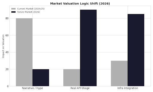 In 2026, valuation won’t favor chains shouting narratives. It will favor protocols that quietly power real APIs, real memory persistence, and real user adoption.