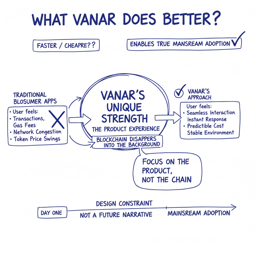 So when people ask what Vanar does better than anyone, the honest answer is not that it is simply faster or cheaper. It is that it is trying to make blockchain disappear into the background for consumer apps. The user is not meant to feel the chain. The user is meant to feel the product. Vanar is attempting to build an L1 where mainstream adoption is not a future narrative, but a design constraint from day one.