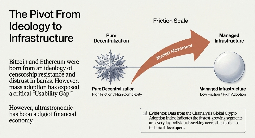 The early crypto movement was driven by ideology: decentralization, censorship resistance, and freedom from traditional financial institutions. Bitcoin was born out of distrust in centralized banks. Ethereum expanded the vision by enabling decentralized applications.