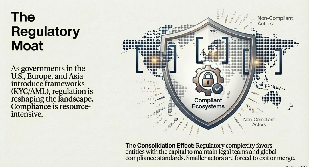 Research into financial market evolution shows that industries often consolidate around entities capable of navigating regulatory complexity. Smaller actors frequently exit or merge.