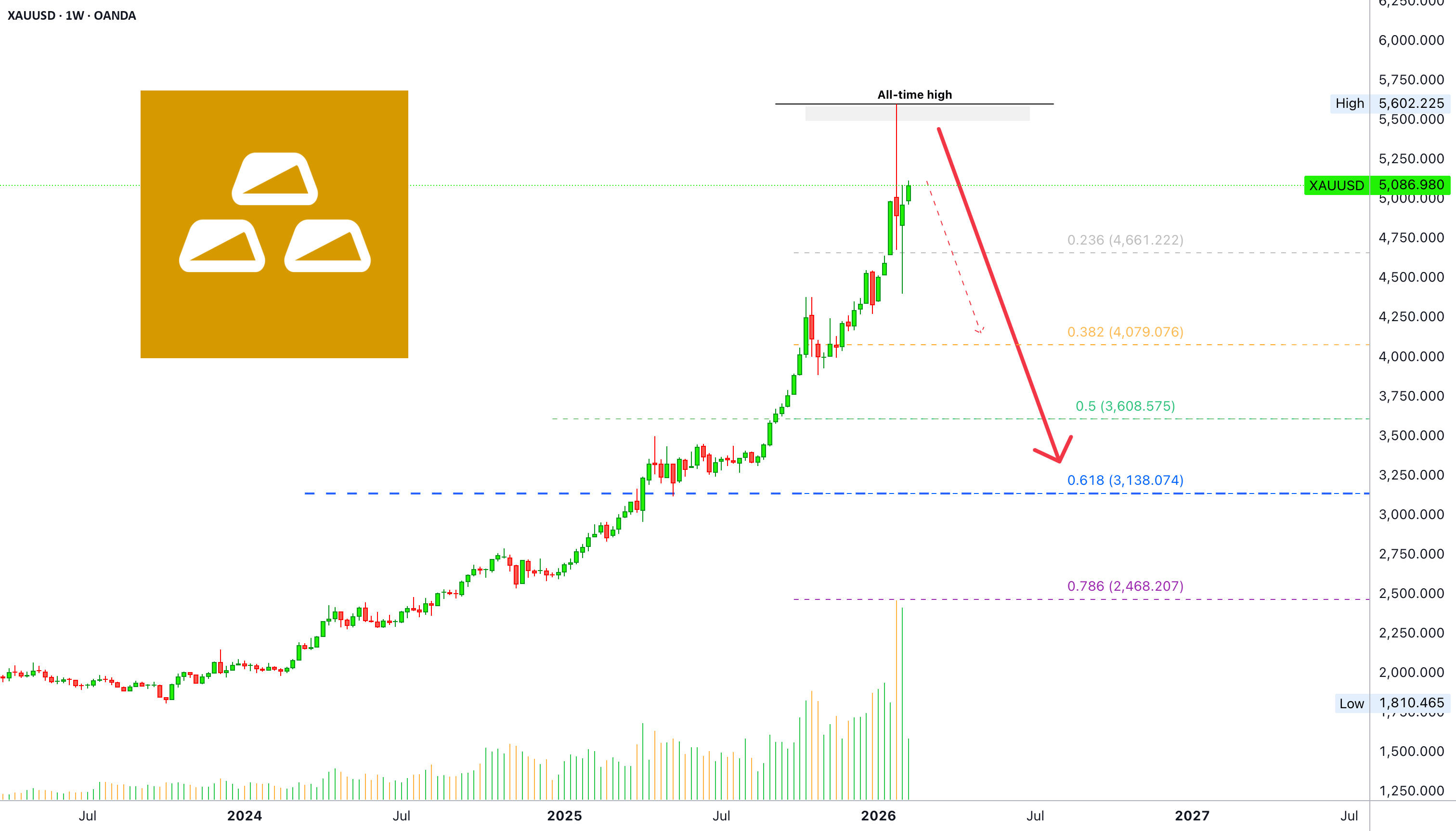 First, $4,100. The main support range after $4,100 breaks mid-term, sits between $3,600 - $3,150. This is where Gold is headed long-term.