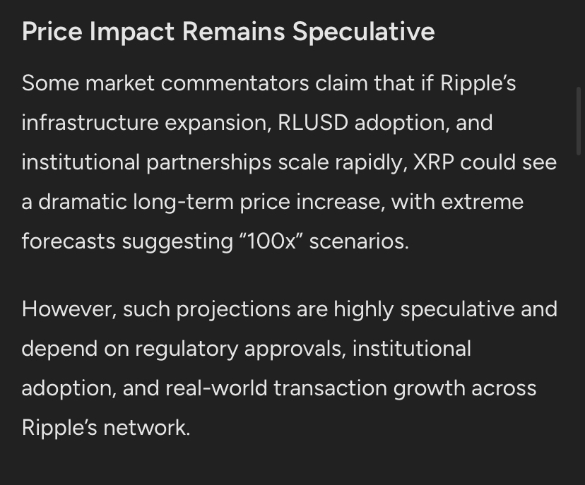 Some market commentators claim that if Ripple's infrastructure expands quickly, along with #RLUSD and institutional partnerships, #XRP may see significant price increases in the long term, with extreme forecasts suggesting '100x' scenarios.