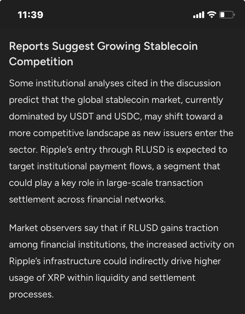 Some institutional analyses mentioned in the discussion predict that the global stablecoin market, currently dominated by USDT and USDC, may shift towards a more competitive landscape with new issuers entering the sector. Ripple's entry through RLUSD is expected to target institutional payment flows, a sector that can play a critical role in settling transactions on a large scale across financial networks.