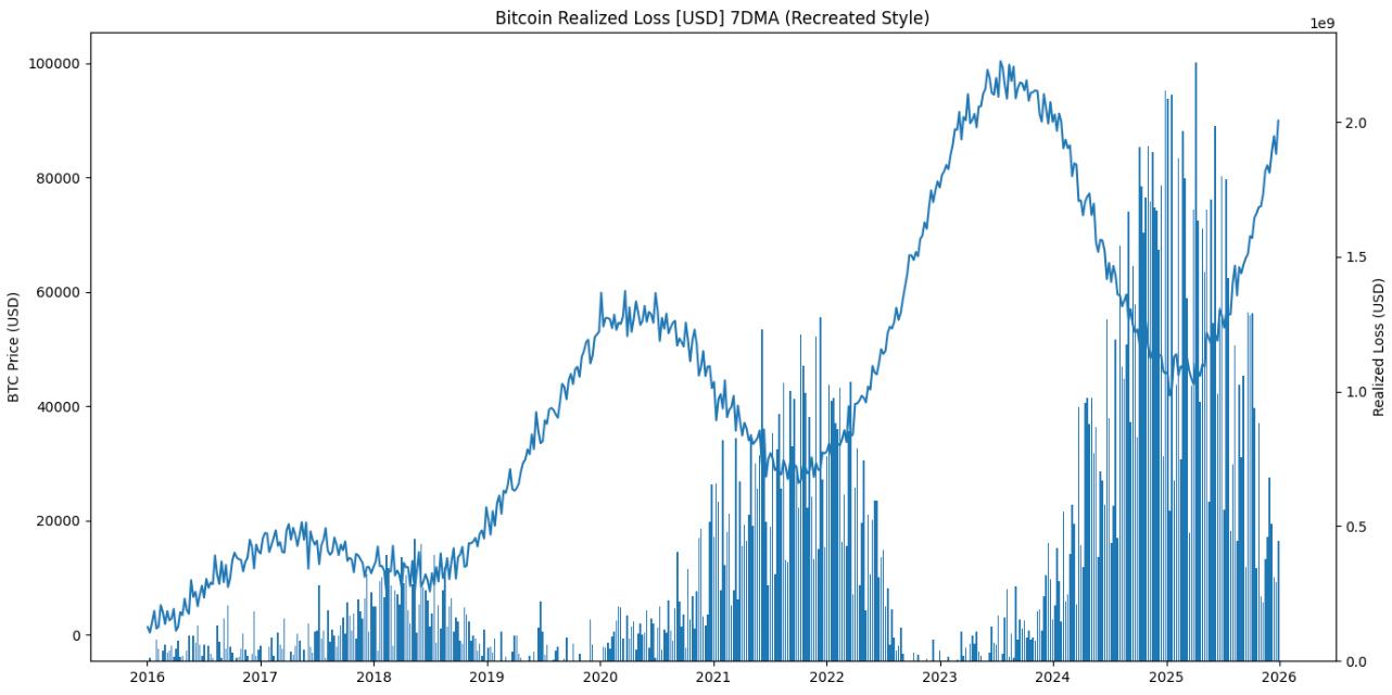 🔥 #Bitcoin Realized Loss (7DMA) has just pushed above $2.3B — one of the most significant stress readings of this cycle.