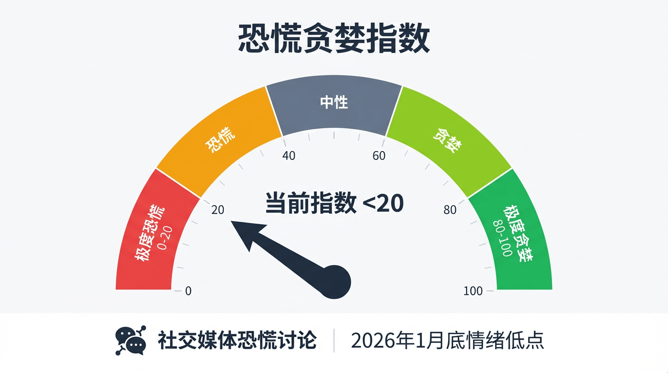 - 当前状态:2026年1月底社交媒体恐慌讨论比例升至2026年以来最高,情绪指标降至2025年11月以来低点(https://x.com/hellosuoha/status/2017749330195845624)