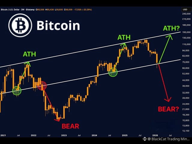 A 50–60% correction remains completely normal within Bitcoin’s macro rhythm. If price revisits the $50,000 region, that would represent roughly a 60% drawdown from the cycle high — severe, but historically consistent.