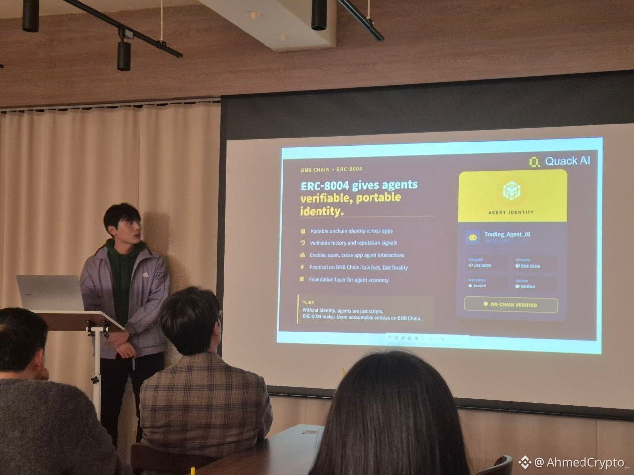 At the Web3 Seoul meetup, one thing stood out: with BNB Chain deploying #ERC8004 (Trustless Agents) on mainnet + testnet, agent identity and on-chain reputation are shifting from theory to real infrastructure.