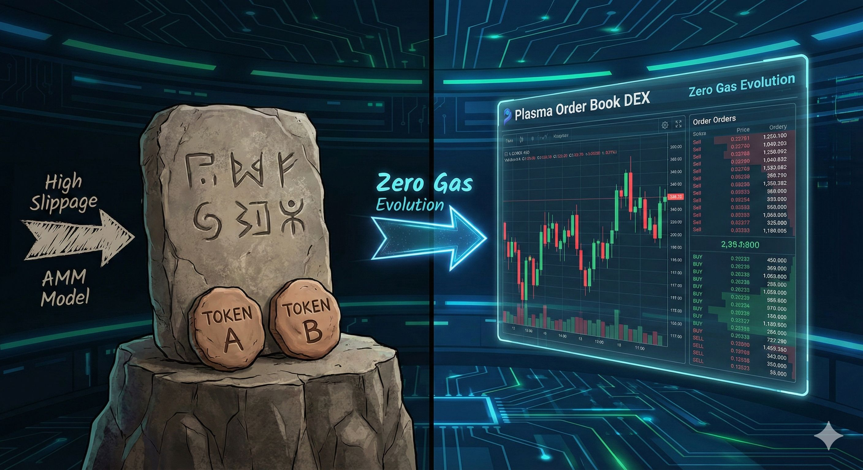The root cause is that due to Gas fees, the current public chains can only run cumbersome models like AMM (Automated Market Maker).