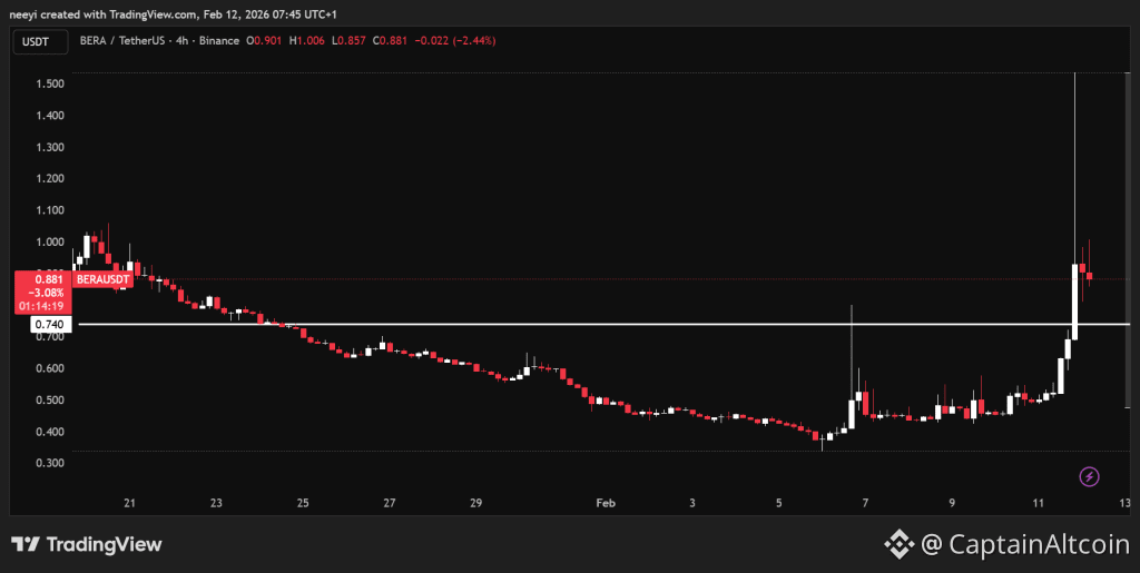 Trading activity expanded at an extreme pace, with volume jumping more than 402% to above $1 billion. BERA also ranked among the three most traded assets on Binance during the move, which points to strong retail participation and fast capital rotation. Moves shaped by liquidity instead of clear news often travel far in a short time, yet they also carry fragile stability.
