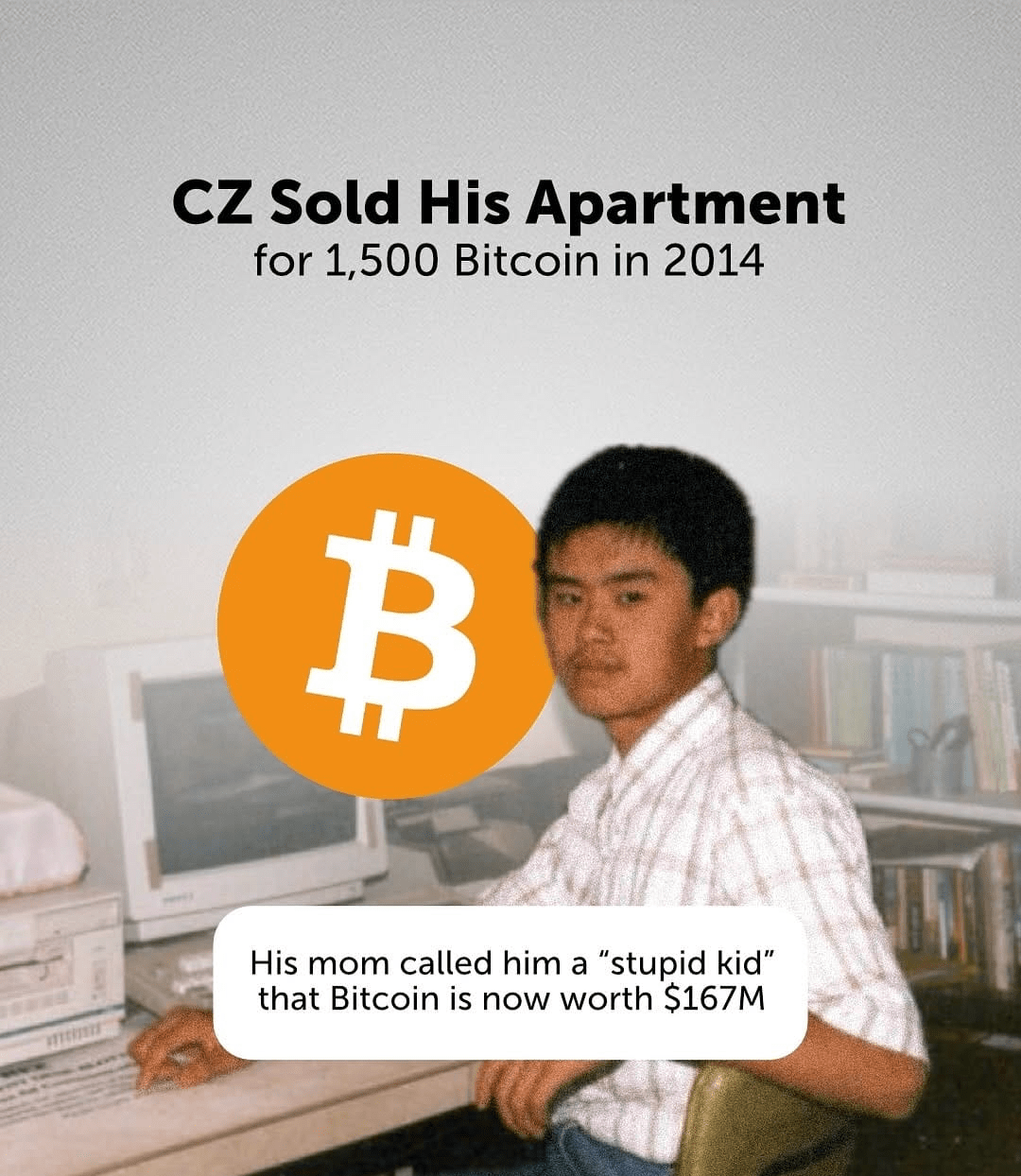 Changpeng Zhao aka @CZ has revealed that he sold his Shanghai apartment for roughly $900,000 to purchase Bitcoin $BTC during a major market downturn in 2014, despite not having a stable job at the time.