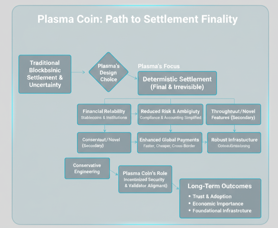 Personally, I see Plasma Coin as directly connected to this reliability narrative. Its value proposition is not built on short-lived speculation or viral momentum. It is anchored in the stability of the settlement layer itself. If the network becomes trusted for deterministic finality, the economic importance of the coin strengthens alongside it. Trust compounds. Usage compounds. And infrastructure that proves dependable tends to endure.