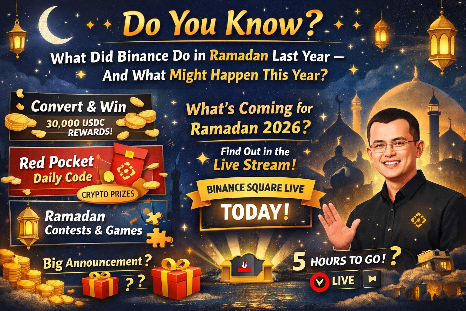 ✨ Because in just 5 hours, a live stream is scheduled on Binance Square, where the Binance founder/team will answer our questions and possibly make an important announcement related to Ramadan 🎙️.