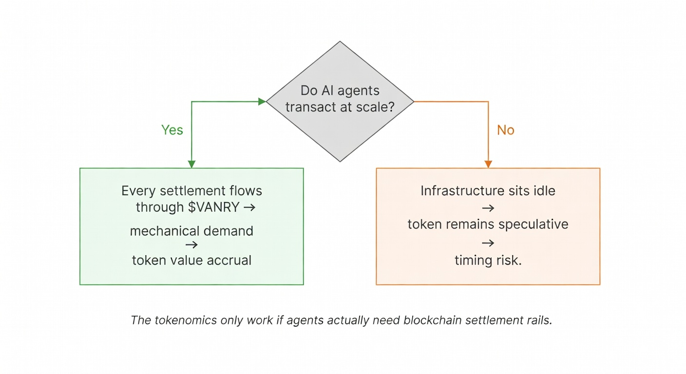 if agents actually transact at scale, every payment and every settlement touches Vanry. that's not governance theater. that's mechanical demand tied to usage. more agents running, more VANrY flowing thrrough the pipes.