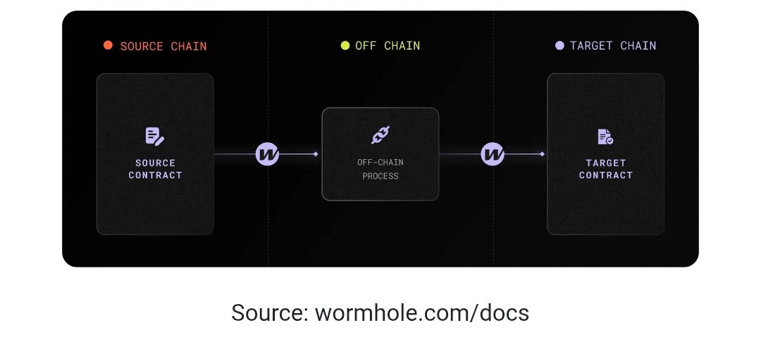 Wormhole’s architecture combines on-chain smart contracts with an off-chain decentralized Guardian Network to ensure secure, scalable cross-chain communication.