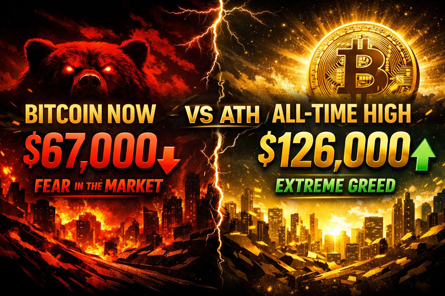 Bitcoin hit $126,198 in October 2025. Now it's at $67K. Whales dumped $172M. The market is directionless. Here's exactly what's happening.