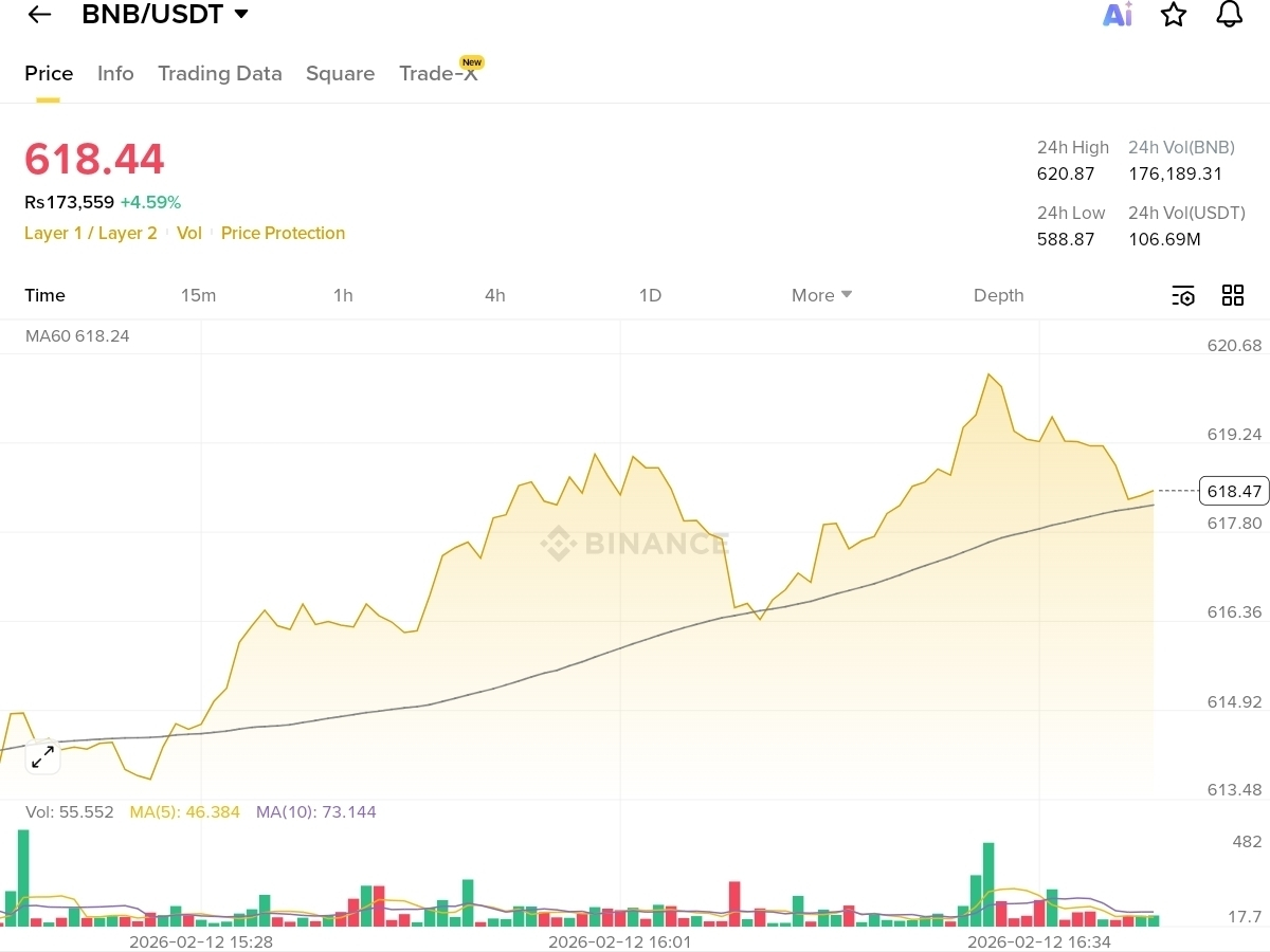 BNB holding above MA60 (~$618) → bullish structure intact