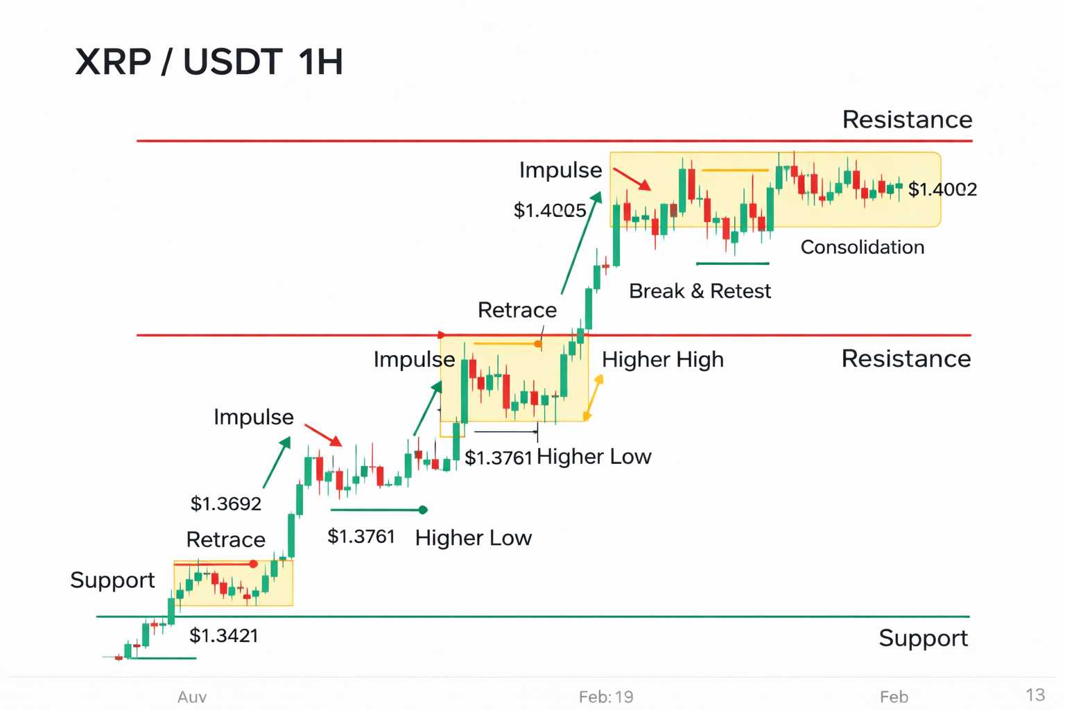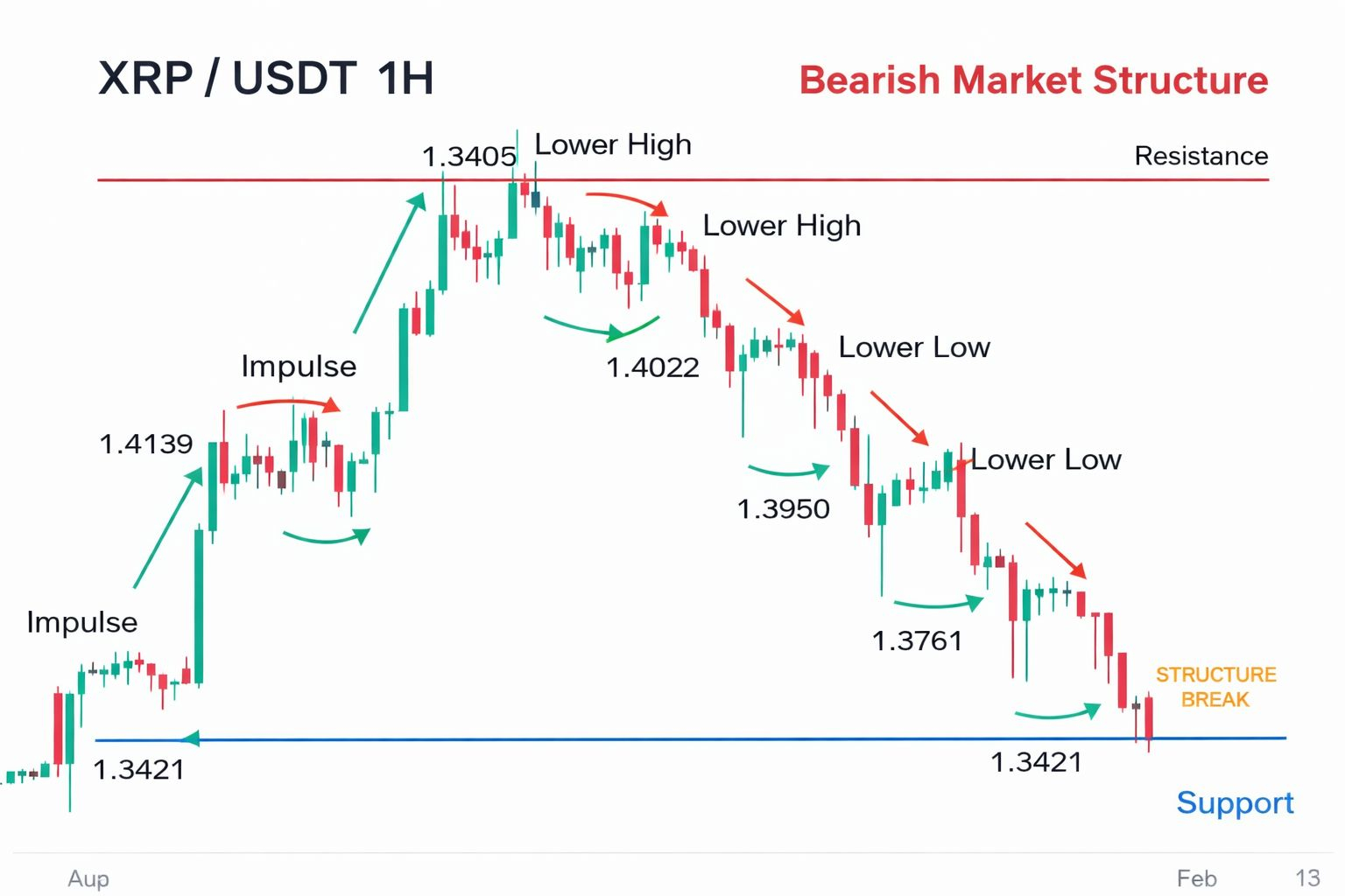 If XRP fails to hold above $1.40 and drops back toward $1.34 support, do not panic. Instead, assess structure. Does it form a higher low? Or does it break previous support decisively?