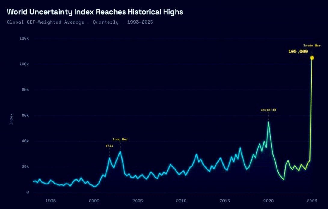 Global uncertainty index hits record levels, now exceeding the combined impact of 9/11, the Iraq War, and the pandemic, driven by the Epstein files, accelerating Al disruption, and rising geopolitical tensions.