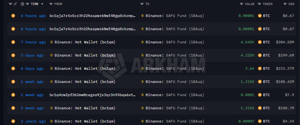 Total: 15,000 BTC – equivalent to the top 10 largest Bitcoin wallets in the world, surpassing even Coinbase. Binance is not only buying, but also publicly sharing the SAFU wallet address and committing to rebalance if the fund value drops below 800 million USD.