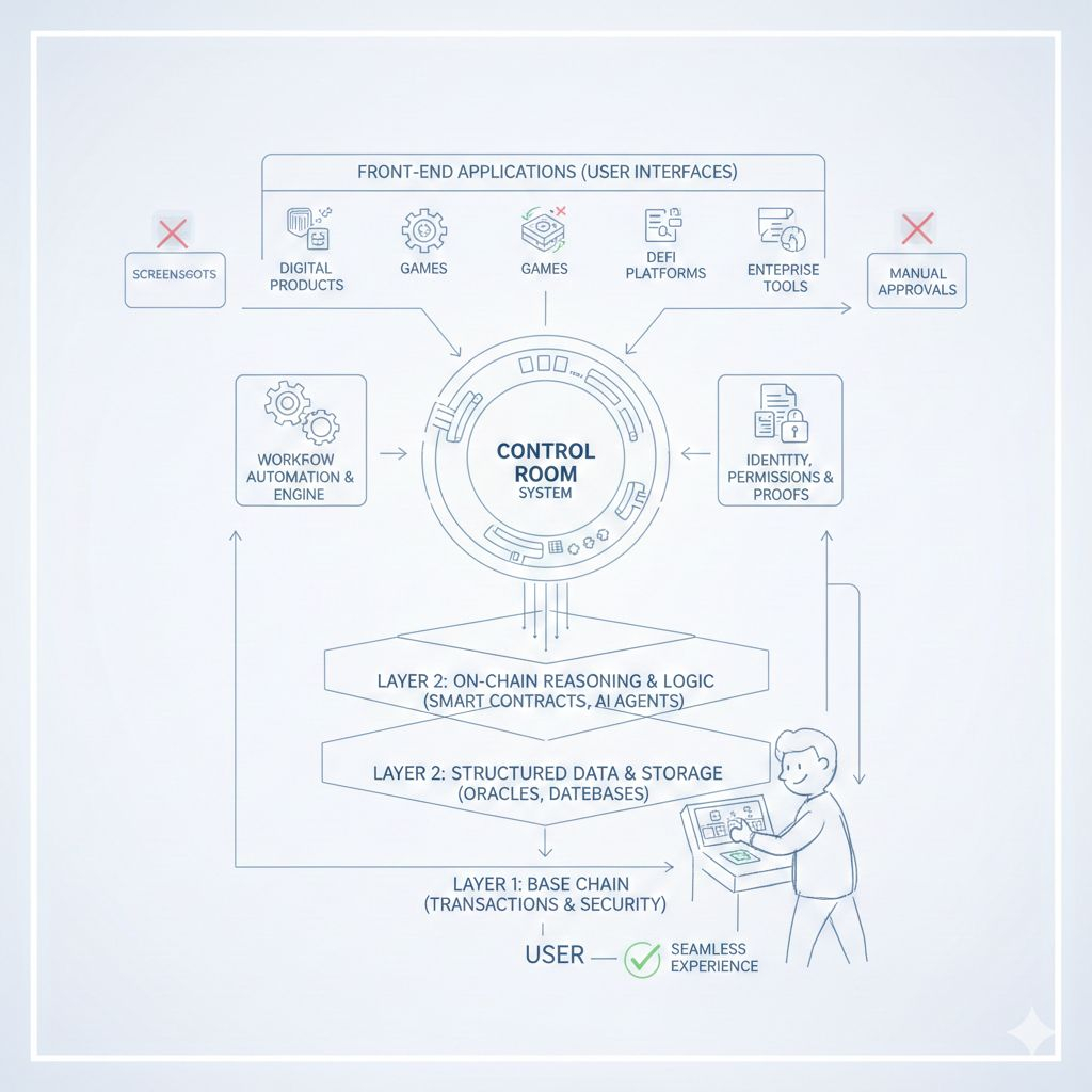 When I try to understand what Vanar is actually trying to be, I keep coming back to a comparison that has nothing to do with block sizes or throughput: it feels less like another “road” for transactions and more like a backstage control room that’s meant to quietly run the messy, real-world parts of digital products without forcing users to learn new rituals.