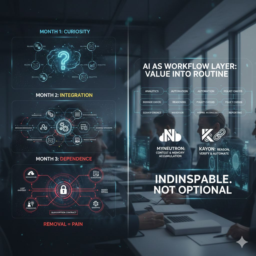 Think about what happens when a company adds a billing API, a CRM, or an analytics stack that actually gets used. The first month is curiosity. The second month is integration. The third month is dependence. After that, it’s not a tool anymore—it’s a habit wearing a contract. They keep paying because removing it creates pain. Not theoretical pain. Real pain: broken workflows, lost context, slower decisions, missed signals.