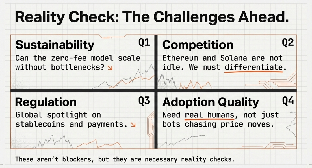 These aren’t “blockers” but they are reality checks. Projects often get too caught up in hype and forget the hard parts like ensuring resilience, developer growth, real user flows, and sustainable economics.