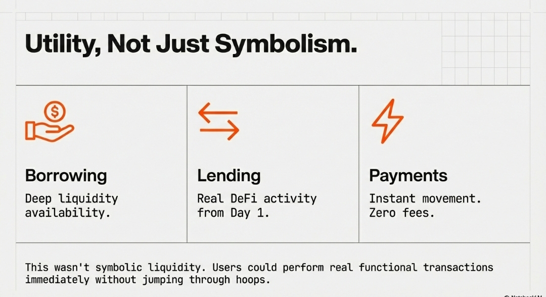 What made this launch compelling was not just the number, it was the immediate functionality. People could move stablecoins instantly, with zero fees on certain transactions and deep liquidity available for borrowing, lending, and payments without having to jump through hoops. That’s a big deal.