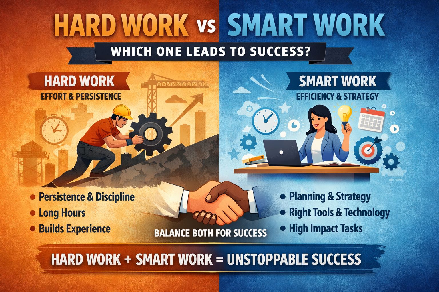 The most successful individuals and organizations combine both approaches. They work hard on important tasks and use smart methods to maximize results. This balance allows them to grow faster and stay competitive.