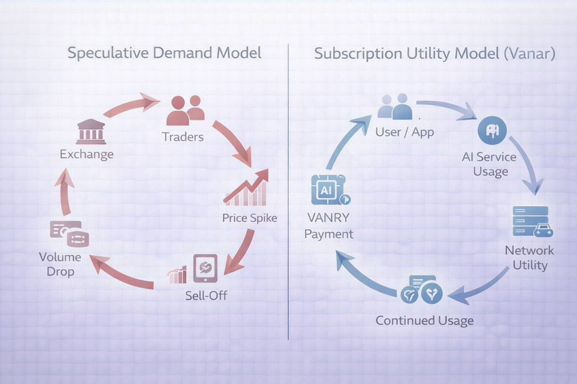 Most L1 tokens live on trading volume, narrative pumps, or influencer shills—super thin ice that cracks the second the mood sours. Vanar’s trying the opposite: subscription billing + utility-locked token usage means value can come from actual customers using the product, not just traders chasing pumps.
