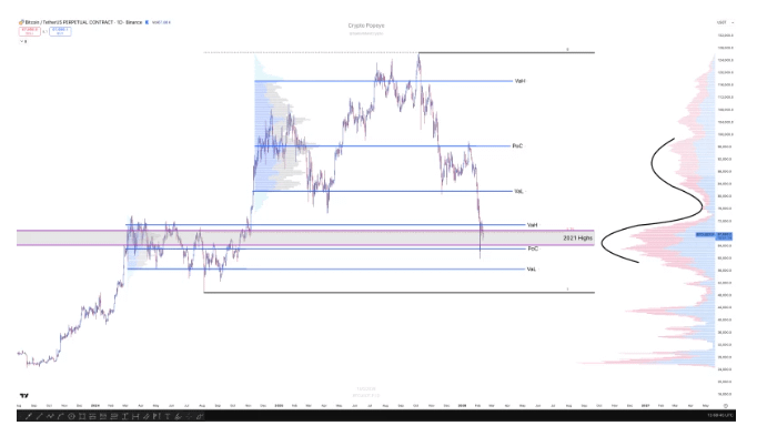 This matters because when Bitcoin camps out around its 2021 highs, it usually reflects uncertainty across the entire crypto market. Traders are waiting for a decisive move—either a clean break above resistance or a drop below support—before committing to a direction.