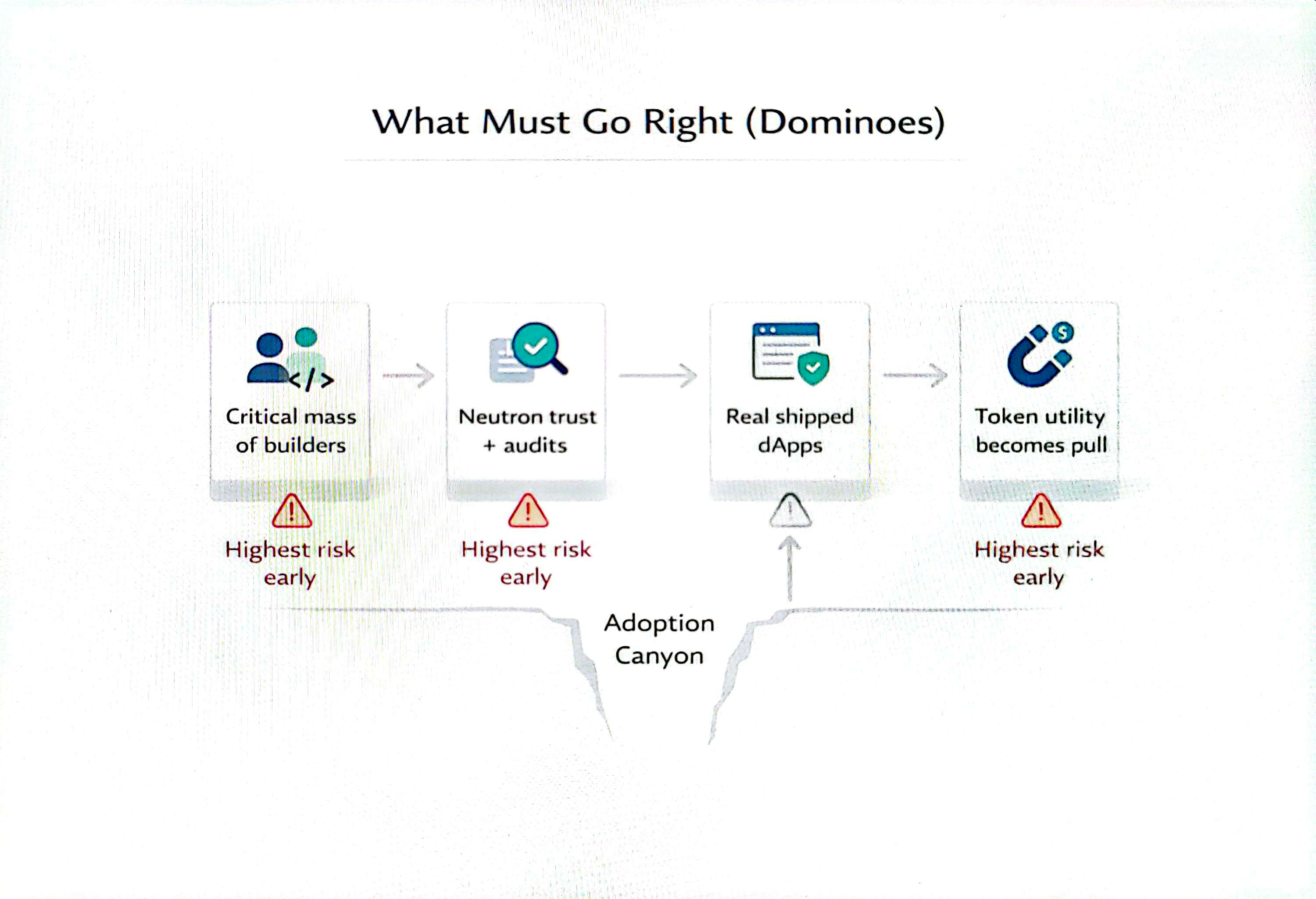Compression trust gap. It is an impressive achievement of neutron that they have 500:1 compression claims, but the wider implementation needs to be audited and peer reviewed. Some builders will remain skeptical until scale has been confirmed as safe and honest by third parties.