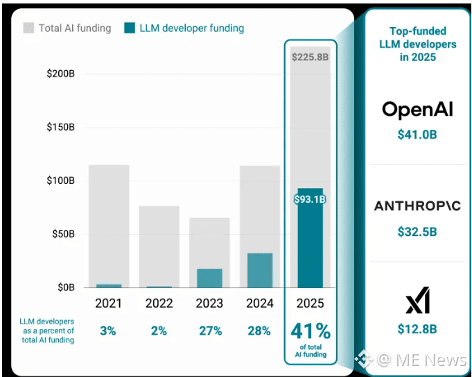 据统计,2025年全球AI赛道融资总额约为2110亿美元(约合人民币1.5万亿元),占全球创投融资总额的近50%。这一数据来源于CrunchBase和PitchBook等权威机构统计,反映了AI行业在2025年的资本热度。