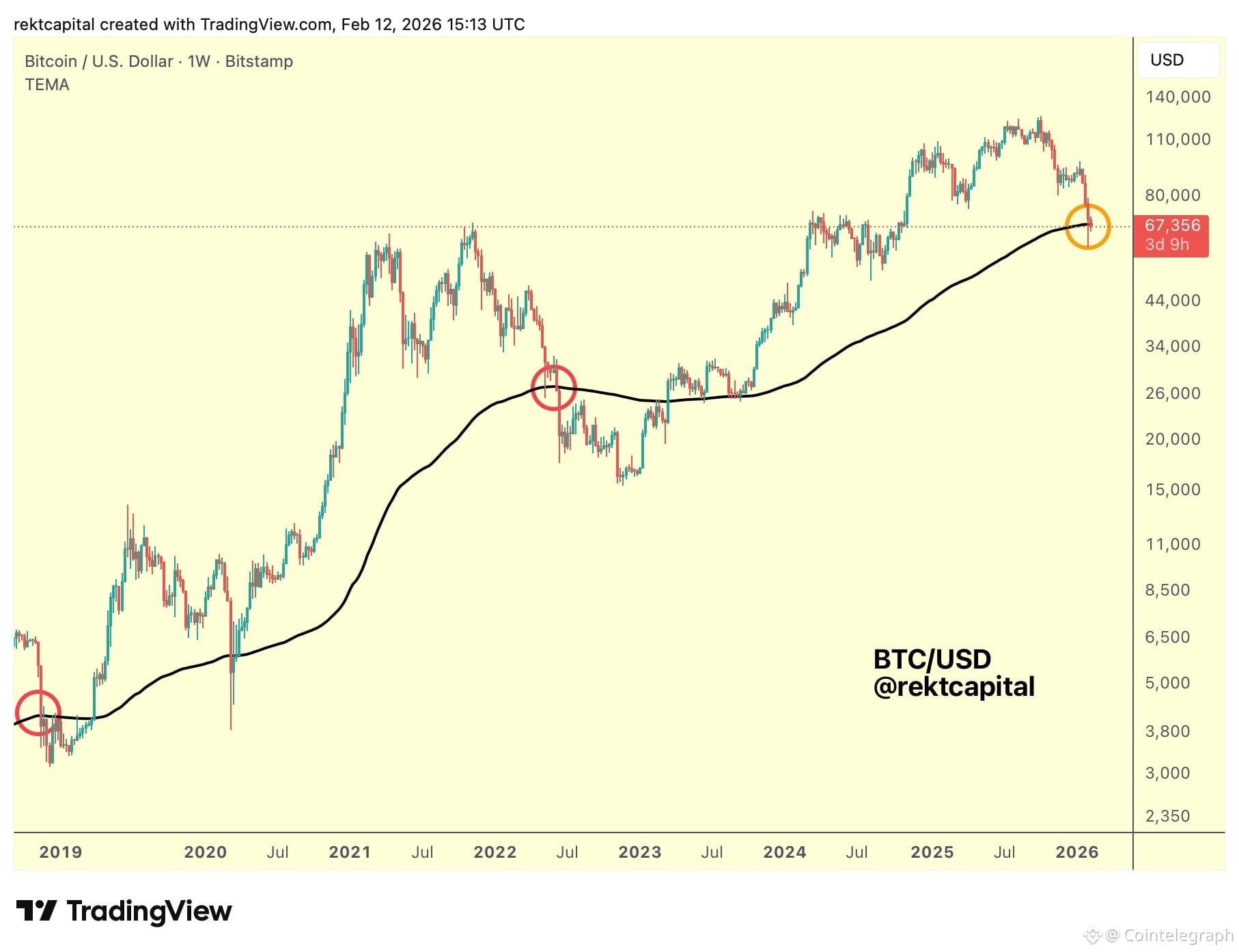 BTC/USD one-week chart with 200EMA. Source: Rekt Capital/X