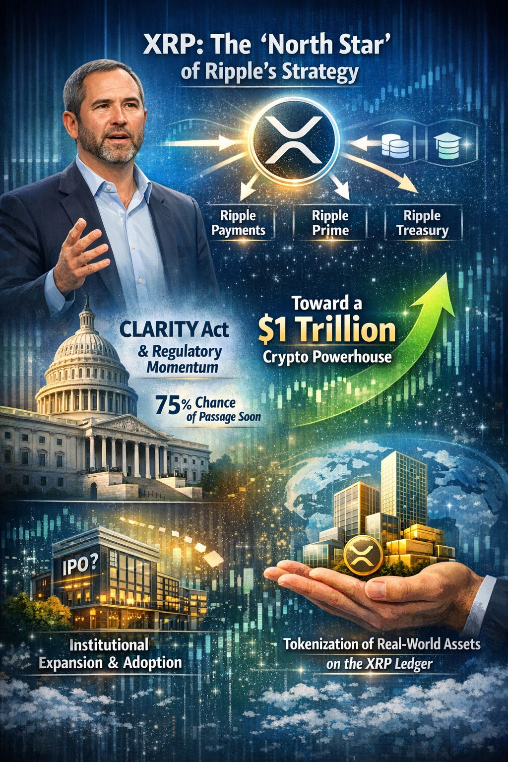 Garlinghouse reaffirmed that XRP isnāt a side project but the āNorth Starā guiding Rippleās direction, with the firmās core offerings ā Ripple Payments, Ripple Prime, and Ripple Treasury ā oriented toward expanding XRP and RLUSD use cases across payments, lending, and treasury solutions. He emphasized institutional depth and liquidity as key strategic priorities, noting that products are designed to drive enterprise-grade utility and compliance around XRP.