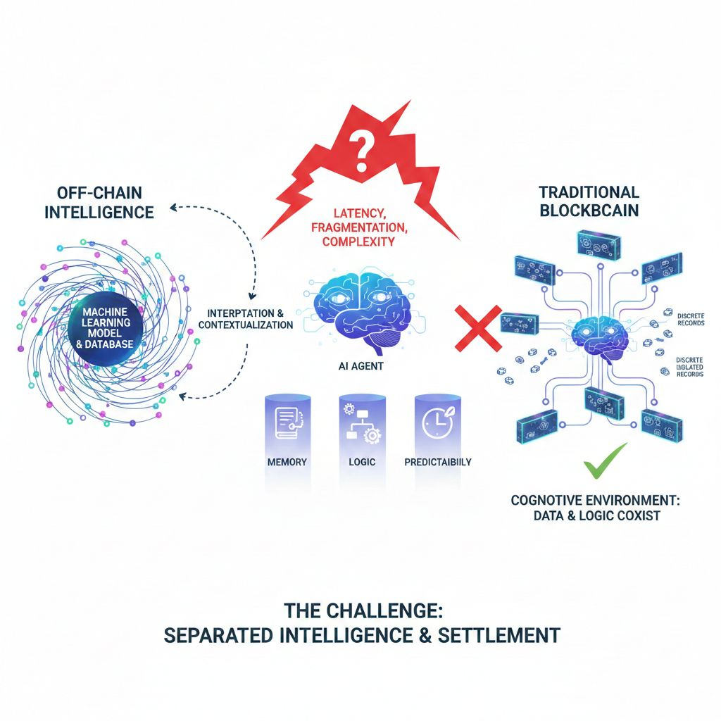 While this approach works in limited scenarios it creates fragmentation. Intelligence is detached from settlement. The blockchain becomes a passive ledger rather than an active environment for reasoning. As AI agents scale in complexity and frequency of interaction this separation becomes increasingly inefficient.