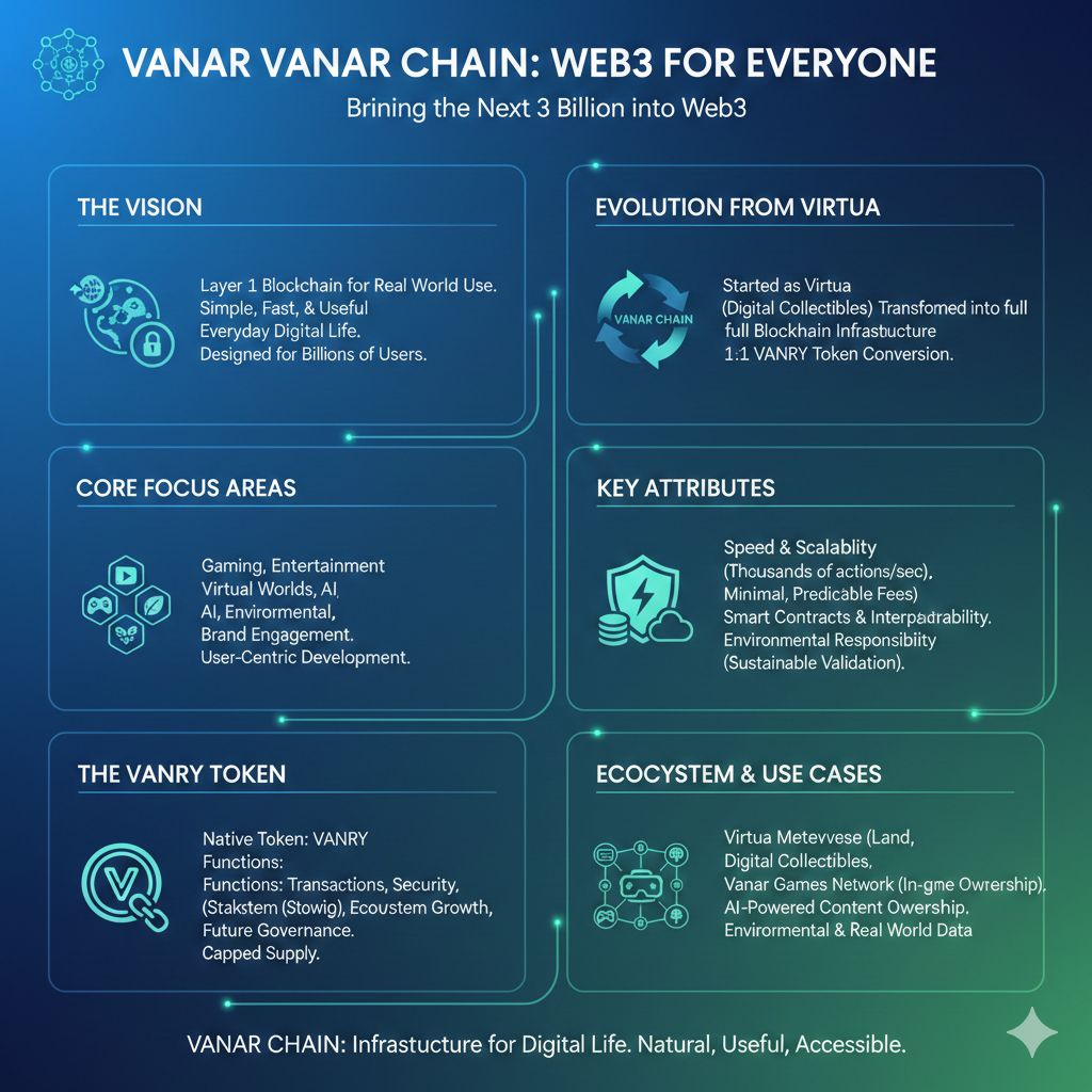 with one main idea in mind. Blockchain should work for real people in the real world. Most blockchains were designed for traders and developers who already understand wallets and gas fees. Vanar was designed for everyone else. Its mission is to help bring the next three billion people into by making blockchain simple, fast, and useful in everyday digital life.