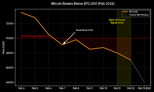 For traders focused on the chart, $70,000 now flips from support into a test zone. If Bitcoin reclaims it and holds, the move can start to look like a shakeout. If price fails under it, sellers may press toward the next demand area, where longer-term holders often look for value.